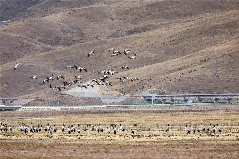 “天路”旁的黑頸鶴。索朗多杰 攝