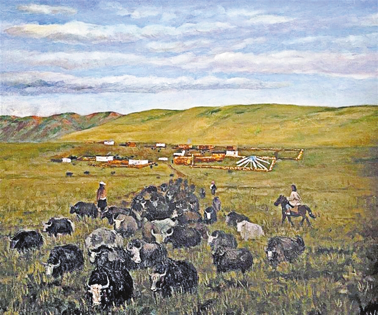 美術二等獎作品《幸福西藏·牧區(qū)印象》。 作者 郭扎