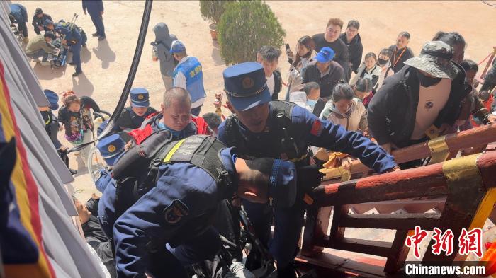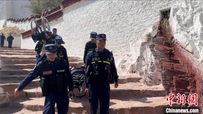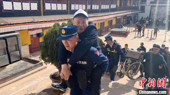圖為布達拉宮消防大隊護航殘障人士游覽。劉瑜 攝