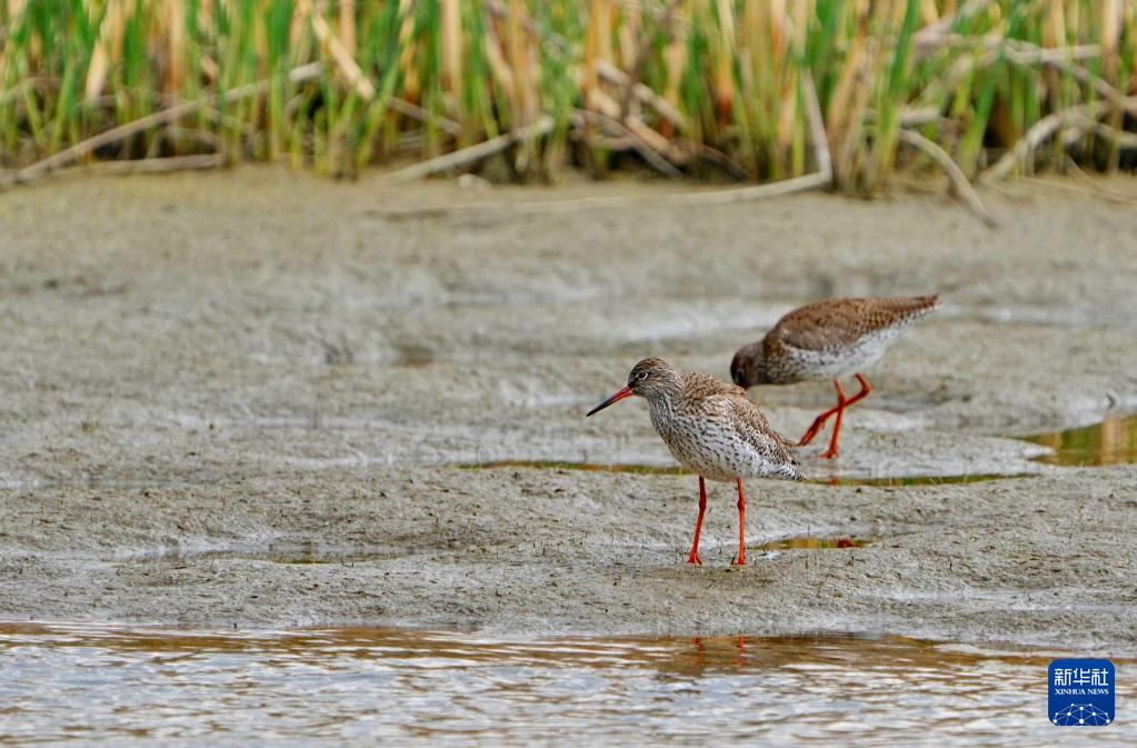 拉魯濕地里的紅腳鷸(5月5日攝)。新華社記者 張汝鋒 攝