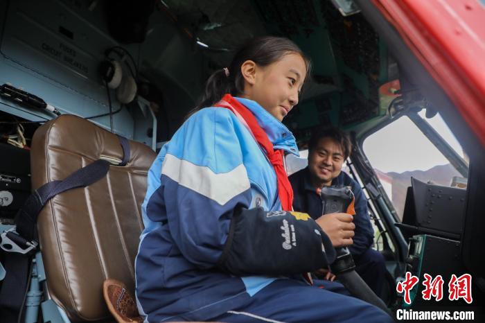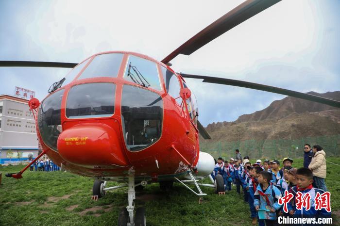 昌都市第二小學(xué)學(xué)生登機(jī)體驗(yàn)救援直升機(jī)。昌都市森林消防支隊(duì) 供圖