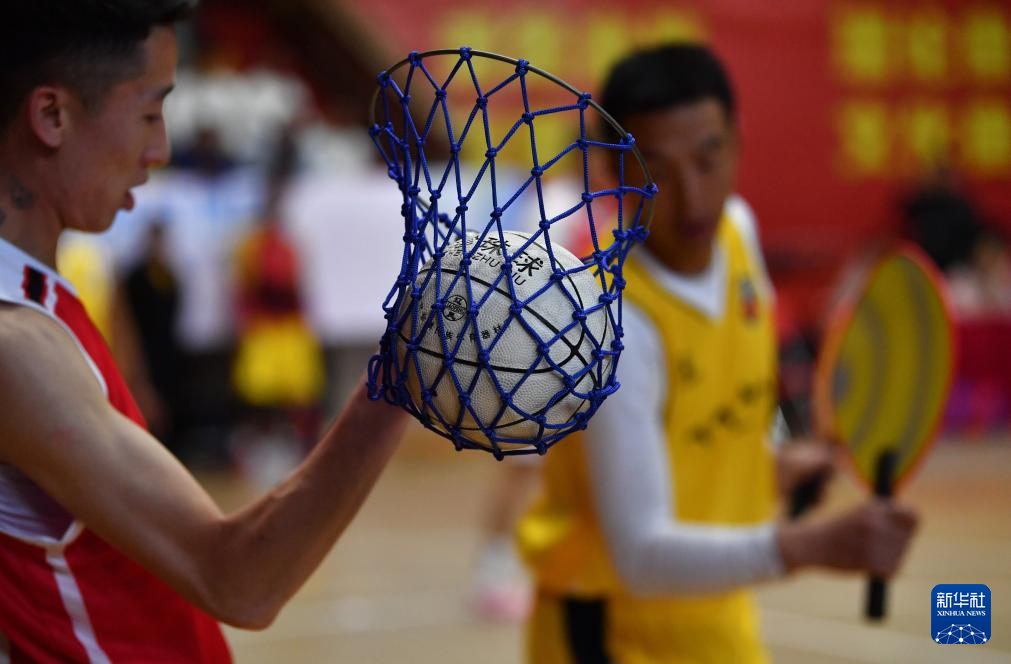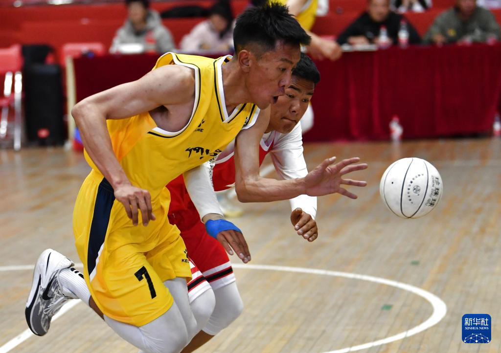 5月14日,山南隊江濤(左一)在比賽中得分。新華社記者 晉美多吉 攝