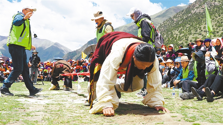 “‘繽紛四季·多彩林周’活動內(nèi)容實(shí)在是太豐富了,我們沿途觀賞到了美景,而且還體驗(yàn)了西藏民俗風(fēng)情,現(xiàn)場看到村民們擠牦牛奶、手工制作奶制品、指尖技藝制作酥油花等。讓我們感到震驚的是藏族大哥、大姐的力氣真是太大了,能用繩子拉動越野車,扛起百斤重的石頭,給我們帶來了滿滿的視覺盛宴。我是第三次進(jìn)藏,這次的收獲最多,讓我體驗(yàn)到了不一樣的西藏?!眮碜员本┑挠慰蛷埾壬d奮地說。