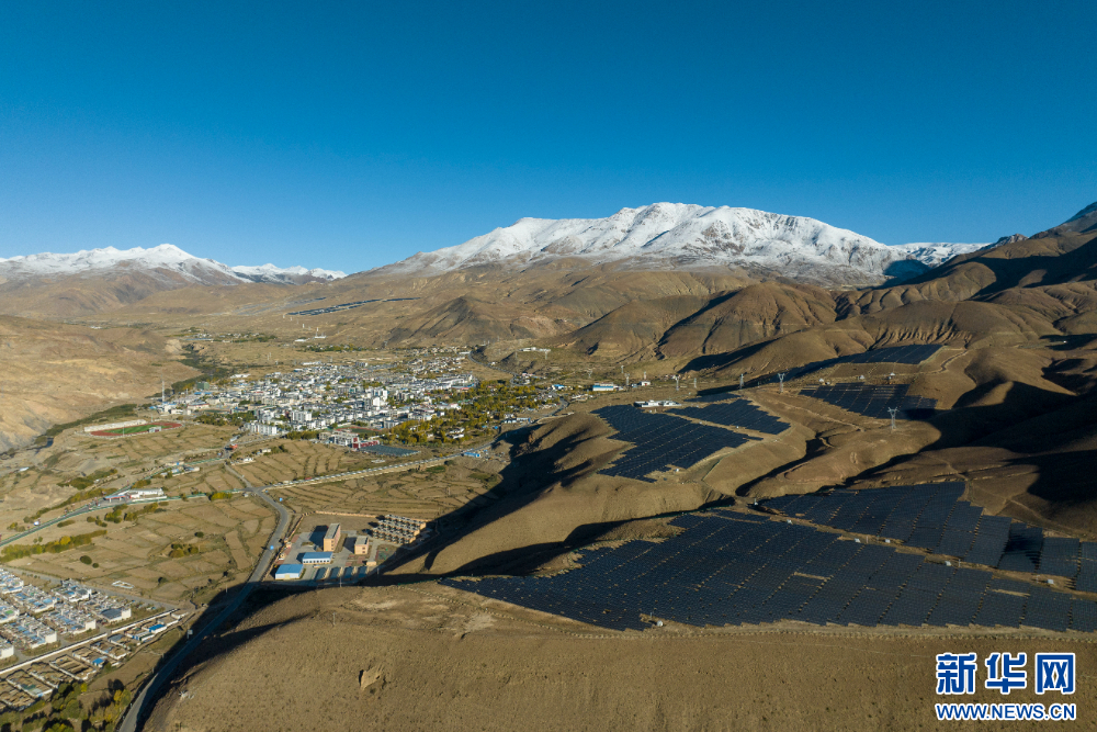 措美縣縣城附近的光伏電站(無人機照片)。新華網 旦增努布 攝