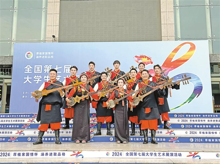 日前,以“厚植家國情懷 涵養(yǎng)進取品格”為主題的全國第七屆大學生藝術展演活動在湖北省襄陽市啟幕。西藏大學生帶來的《扎念彈唱:拉孜堆諧—夏龍查》《甲諧·古韻》分別獲得全國第七屆大學生藝術展演活動器樂一等獎和舞蹈一等獎。