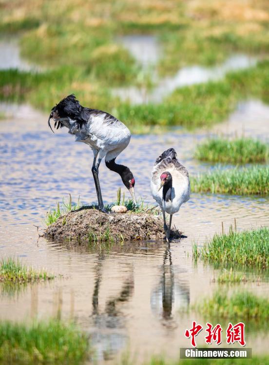 6月16日,在海拔4700米的西藏那曲市申扎縣,經(jīng)過34天的漫長孵化期,一對黑頸鶴夫婦終于等來了自己的小黑頸鶴成功破殼出生。值得一提的是,黑頸鶴寶寶的誕生日也是2024年的父親節(jié),黑頸鶴父親在節(jié)日當(dāng)天喜獲最珍貴的禮物。據(jù)悉,黑頸鶴每窩通常產(chǎn)卵1-2枚,孵化期通常要33到35天。中新社記者 貢嘎來松 攝