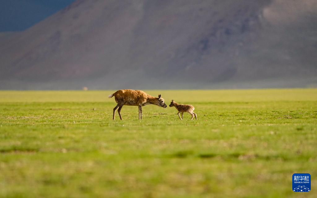 魯確塘草原上的藏羚羊母子(6月16日攝)。新華社記者 旦增尼瑪曲珠 攝