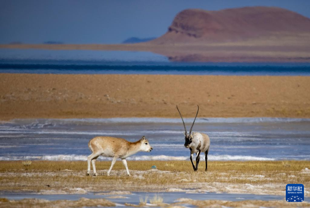 這是在色林錯湖畔拍攝到的藏羚羊(1月5日攝)。 新華社記者 姜帆 攝