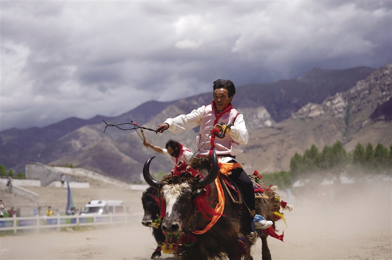 6月22日,由拉薩市人民政府主辦的拉薩首屆農(nóng)牧民運(yùn)動會在拉薩開幕。本屆運(yùn)動會為期5天,設(shè)競技項(xiàng)目、民族傳統(tǒng)與趣味項(xiàng)目兩個大類,涵蓋押加(大象拔河)、賽牦牛、藏棋、秀茲(藏式骰子)等19個比賽項(xiàng)目,共有來自拉薩市各縣(區(qū))、功能園區(qū)的11支代表隊500余名運(yùn)動員參賽。