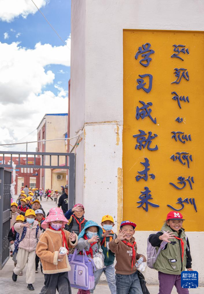 班戈縣中石化小學(xué)學(xué)生放學(xué)后走出校門(6月22日攝)。新華社記者 丁增尼達 攝