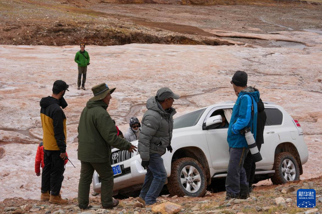 6月15日,車輛在羌塘國(guó)家級(jí)自然保護(hù)區(qū)內(nèi)過(guò)冰坡遇困。新華社記者 旦增尼瑪曲珠 攝
