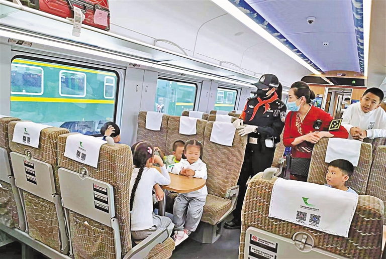 列車乘務(wù)員積極服務(wù)重點(diǎn)旅客。記者 王莉 攝
