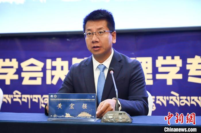 圖為西藏大學(xué)教育學(xué)院書記黃宏強(qiáng)致辭。趙朗 攝
