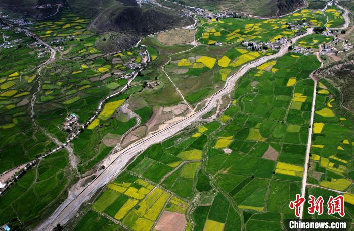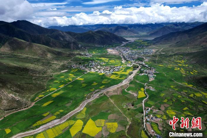 圖為7月10日,拉薩市墨竹工卡縣油菜花盛放。(無人機(jī)照片)中新社記者 李林 攝