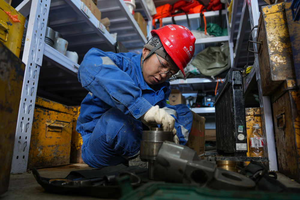 7月11日,操作班長彭銀平在操作鉆機,準備進尺作業(yè)。新華社記者 晉美多吉 攝