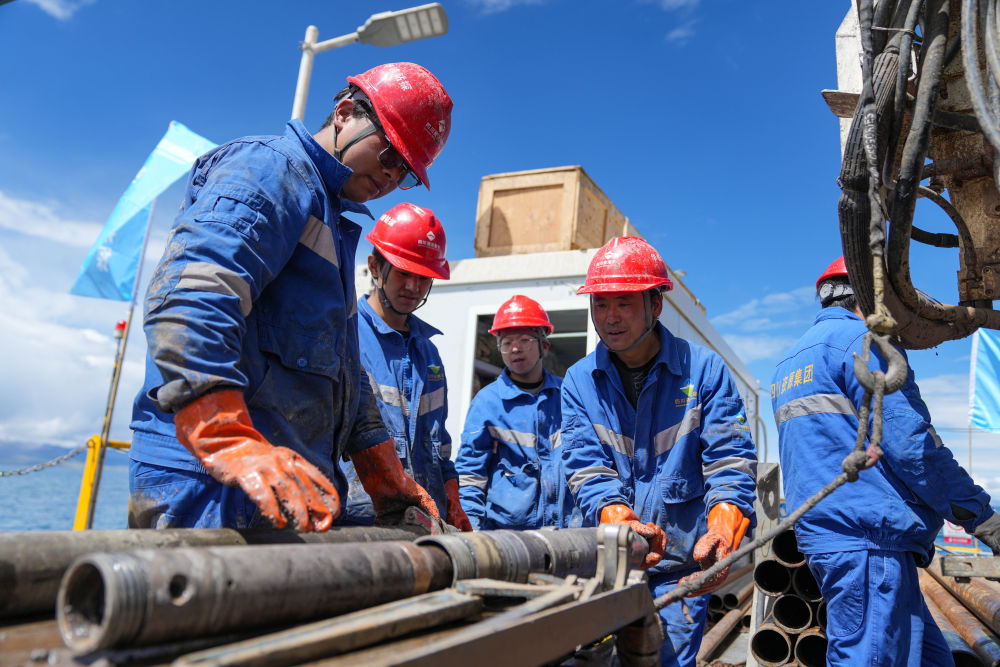 在海拔超過4700米的西藏納木錯中心湖區(qū),21名來自五湖四海的鉆探專業(yè)技術(shù)人員,全天24小時輪班奮戰(zhàn)在面積僅200平方米的水上鉆探平臺上,協(xié)助第二次青藏科考科研人員提取湖泊巖芯樣品,這些樣本如同寶貝一樣,封存著青藏高原納木錯地區(qū)百萬年來的環(huán)境氣候變化信息。 擔任這次湖泊巖芯鉆探任務(wù)的是四川資源集團華鋒鉆探隊。他們從5月31日入駐科考營地、6月6日鉆取第一批湖泊巖芯樣品以來一直奮戰(zhàn)至今。這群平均年齡31歲的鉆探隊員常年工作在高海拔地區(qū),有著豐富的鉆探經(jīng)驗,此次鉆探是他們第一次進行高海拔湖泊鉆探。目前納木錯鉆探深度突破400米,達到國內(nèi)高海拔深水大湖的鉆探新紀錄。這些鉆探隊員在見證奇跡,也在創(chuàng)造歷史。