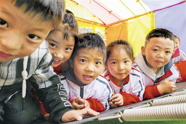 圖為昌都市邊壩縣第一小學的孩子們在課間快樂地玩耍。記者 丹增群培 攝