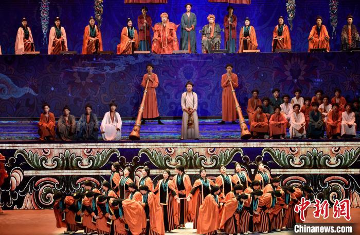 7月19日晚,《緣起象雄·古格遺風(fēng)》情景歌舞詩劇在西藏拉薩上演。該劇通過歌、舞、詩、畫等多種藝術(shù)形式,帶領(lǐng)觀眾身臨其境地感受古象雄文化的獨特魅力和古格王朝的輝煌與傳奇。圖為《緣起象雄·古格遺風(fēng)》演出現(xiàn)場。中新社記者 李林 攝