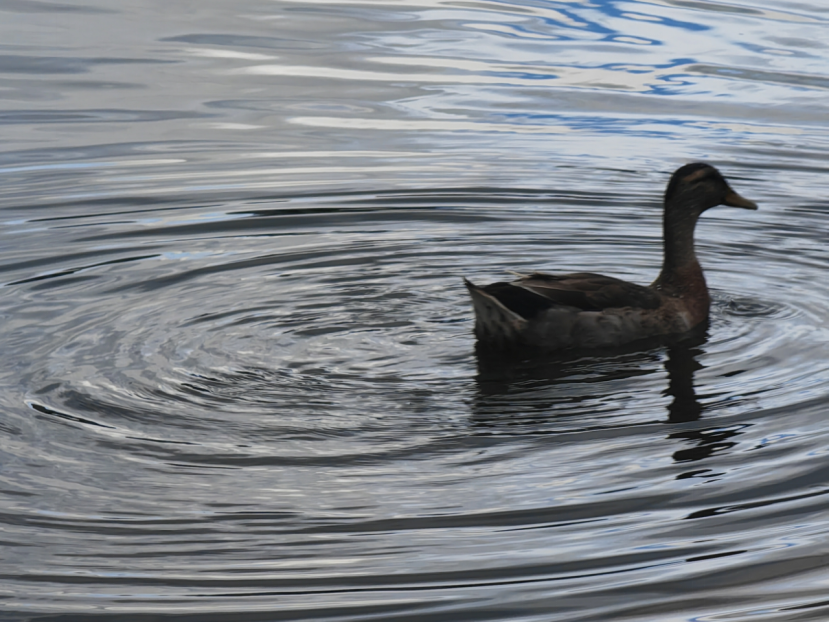 水鴨在園中河流中游行