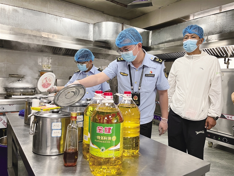 市場(chǎng)監(jiān)管部門(mén)工作人員開(kāi)展校園食品安全檢查。