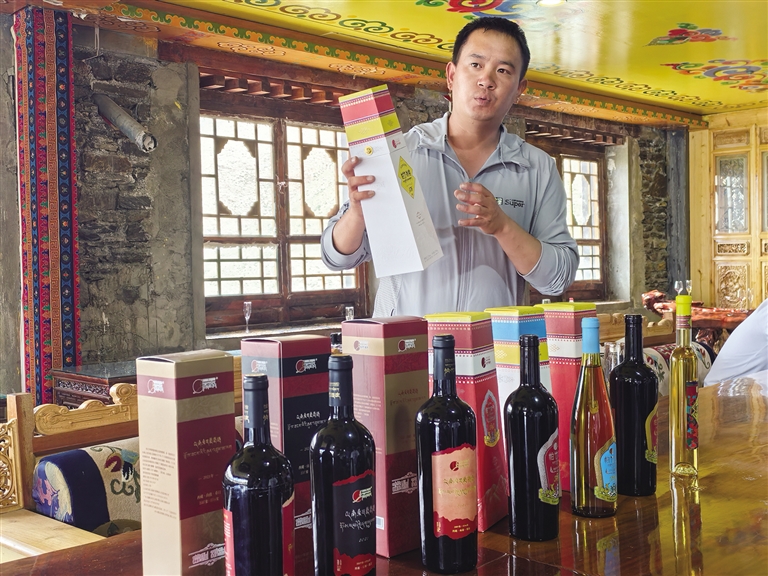 酒莊負責人介紹道:“我們的葡萄酒采用自產(chǎn)的高原葡萄品種釀制而成,具有獨特的風味和口感。近年來,隨著旅游業(yè)的發(fā)展,我們的葡萄酒也受到了越來越多游客的喜愛?!?/p>