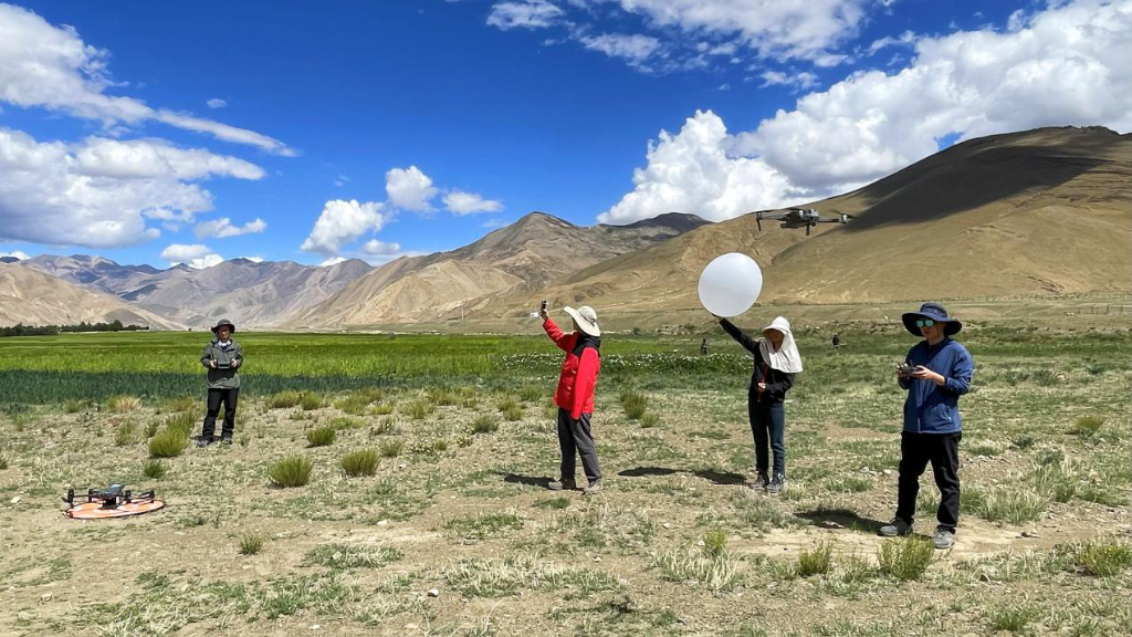 團隊開展探空氣球大氣廓線觀測和無人機熱紅外影像獲取。(中國科學(xué)院空天信息創(chuàng)新研究院供圖)