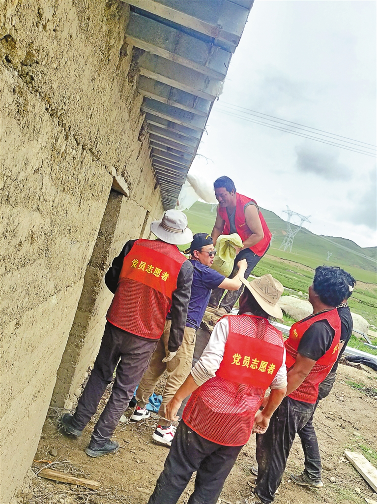 覺尼村黨員干部幫村民維修牛棚。記者 周婷婷 攝