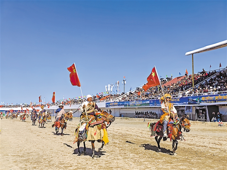 圖為那曲恰青賽馬節(jié)暨第三屆“鄉(xiāng)村振興 那曲奮進(jìn)”活動(dòng)開幕式場(chǎng)景。