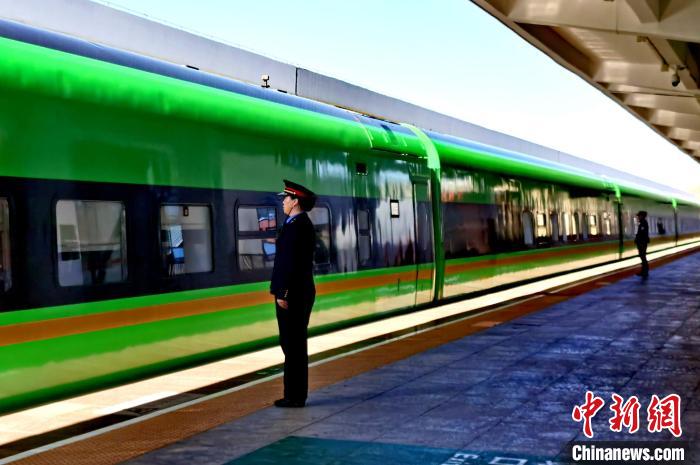 圖為暑運(yùn)期間從日喀則站開(kāi)往拉薩站的復(fù)興號(hào)動(dòng)車(chē)駛離車(chē)站。斗山得 攝