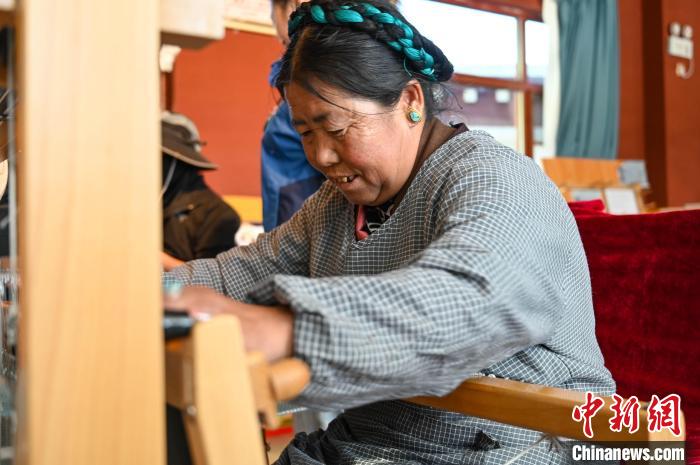 走進位于西藏日喀則江孜縣的上海援建阿佳格桑工坊,次仁吉巴正在制作氆氌。中新網(wǎng)記者 貢確 攝