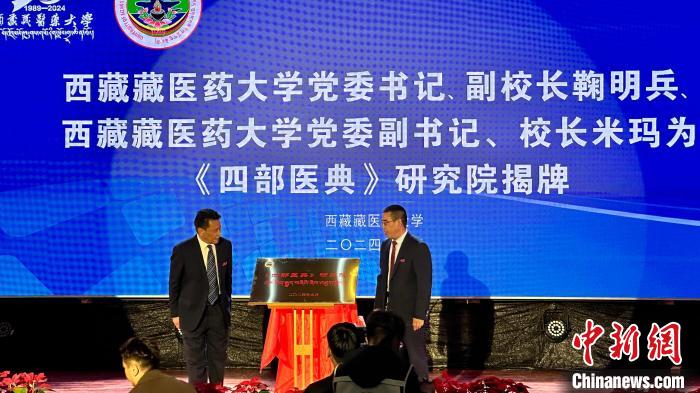 7日下午,《四部醫(yī)典》研究院揭牌儀式在西藏藏醫(yī)藥大學(xué)舉行,西藏藏醫(yī)藥大學(xué)黨委書記、副校長鞠明兵和西藏藏醫(yī)藥大學(xué)黨委副書記、校長米瑪共同為《四部醫(yī)典》研究院揭牌。
