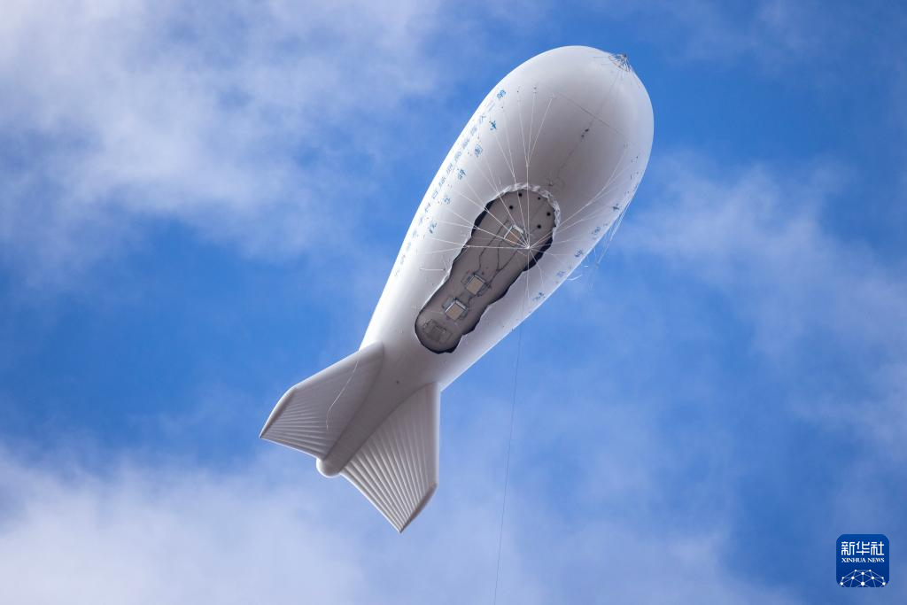形似“大白鯨”的極目一號(hào)Ⅰ型浮空艇14日在西藏雙湖完成了22天來的第8次科學(xué)觀測。