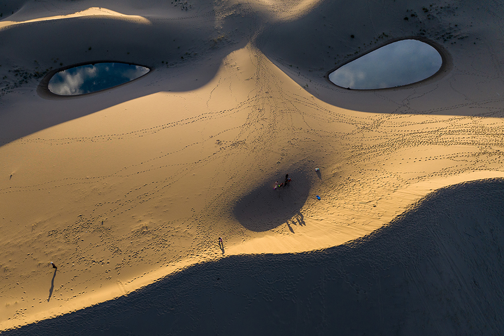 游客在西藏山南扎囊國家沙漠公園拍攝(無人機(jī)照片,9月15日攝)。新華網(wǎng) 旦增努布 攝