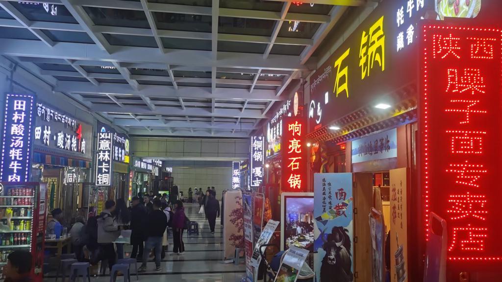藏面、重慶小面、蘭州拉面、青海釀皮、新疆大盤雞拌面、陜西臊子面、吉林冷面、北京炸醬面……面師傅把把上勁、壓面機聲聲軋壓、食客們大快朵頤。
