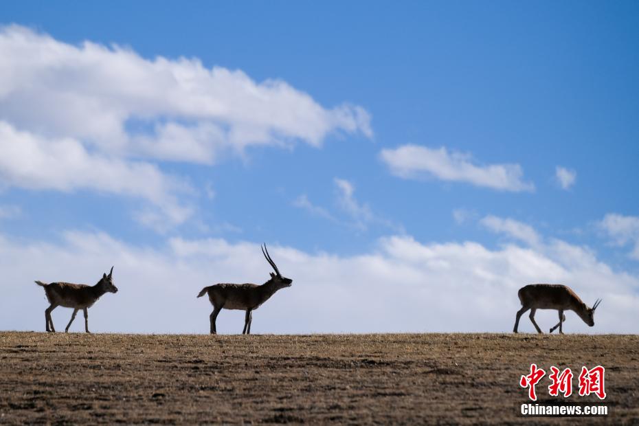 西藏羌塘草原位于昆侖山脈、唐古拉山脈和岡底斯山脈之間,是野生動植物的天堂。近日,中新社記者探訪西藏羌塘草原腹地那曲市雙湖縣,看到當?shù)夭亓缪?、藏野驢、藏原羚等野生動物成群覓食,悠然自得。