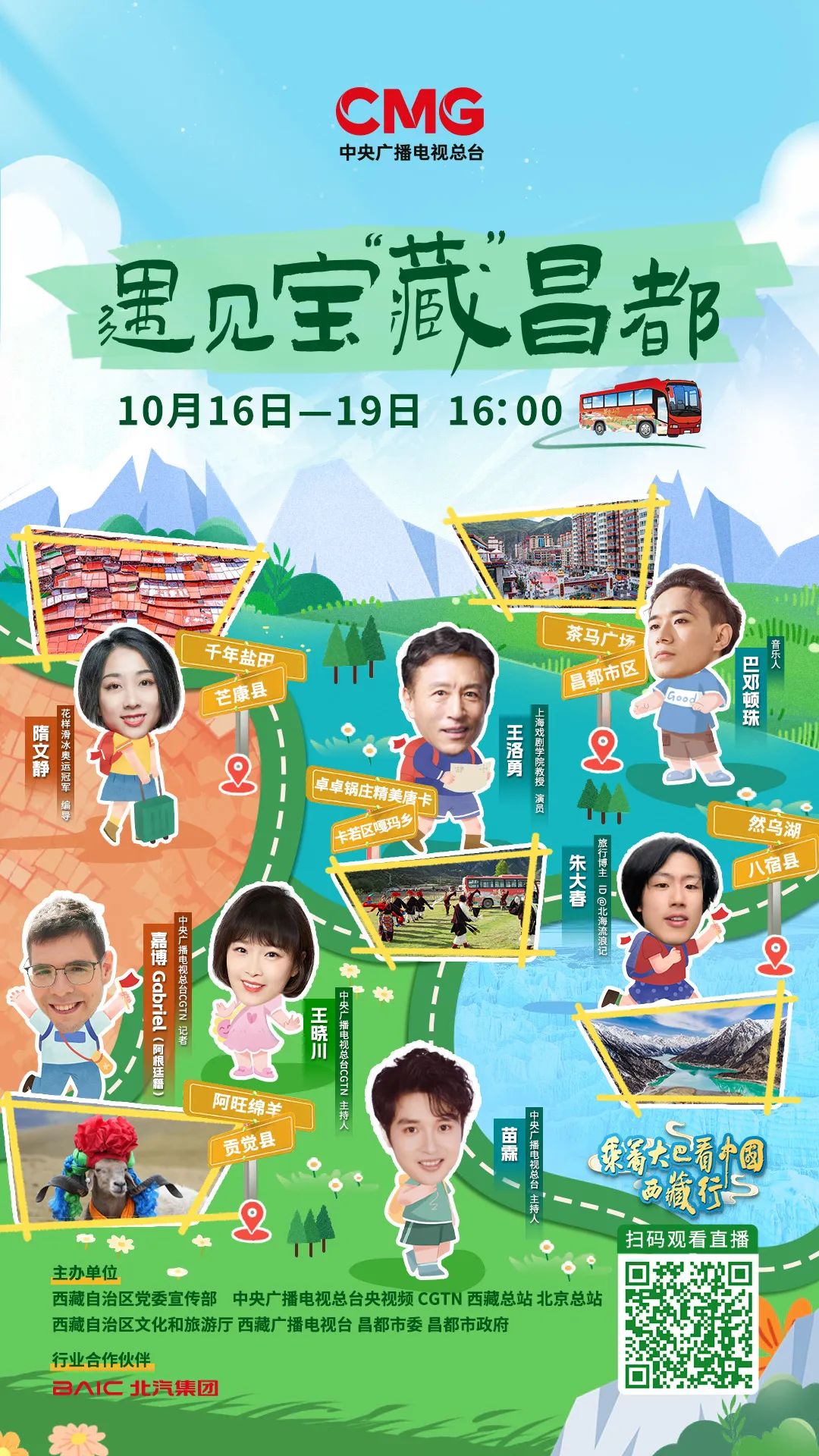 10月16日至10月19日,“跨越山海 格?;ㄩ_(kāi)——乘著大巴看中國(guó) 西藏行”大型融媒體活動(dòng)播出,總臺(tái)大巴車(chē)開(kāi)進(jìn)西藏昌都,自芒康過(guò)貢覺(jué),經(jīng)卡若到八宿,海拔從2300米一路攀升,探訪(fǎng)團(tuán)深入千年鹽田,探秘萬(wàn)年冰川,品嘗原生態(tài)的“阿旺綿羊”,領(lǐng)略中國(guó)民間文化藝術(shù)之鄉(xiāng)——嘎瑪鄉(xiāng)的風(fēng)采,多彩的地貌風(fēng)光與璀璨的藏東文化,盡顯昌都文化魅力。本次活動(dòng)由西藏自治區(qū)黨委宣傳部、中央廣播電視總臺(tái)央視頻、CGTN、西藏總站、北京總站和西藏自治區(qū)文化和旅游廳、西藏廣播電視臺(tái)、昌都市委市政府聯(lián)合主辦。