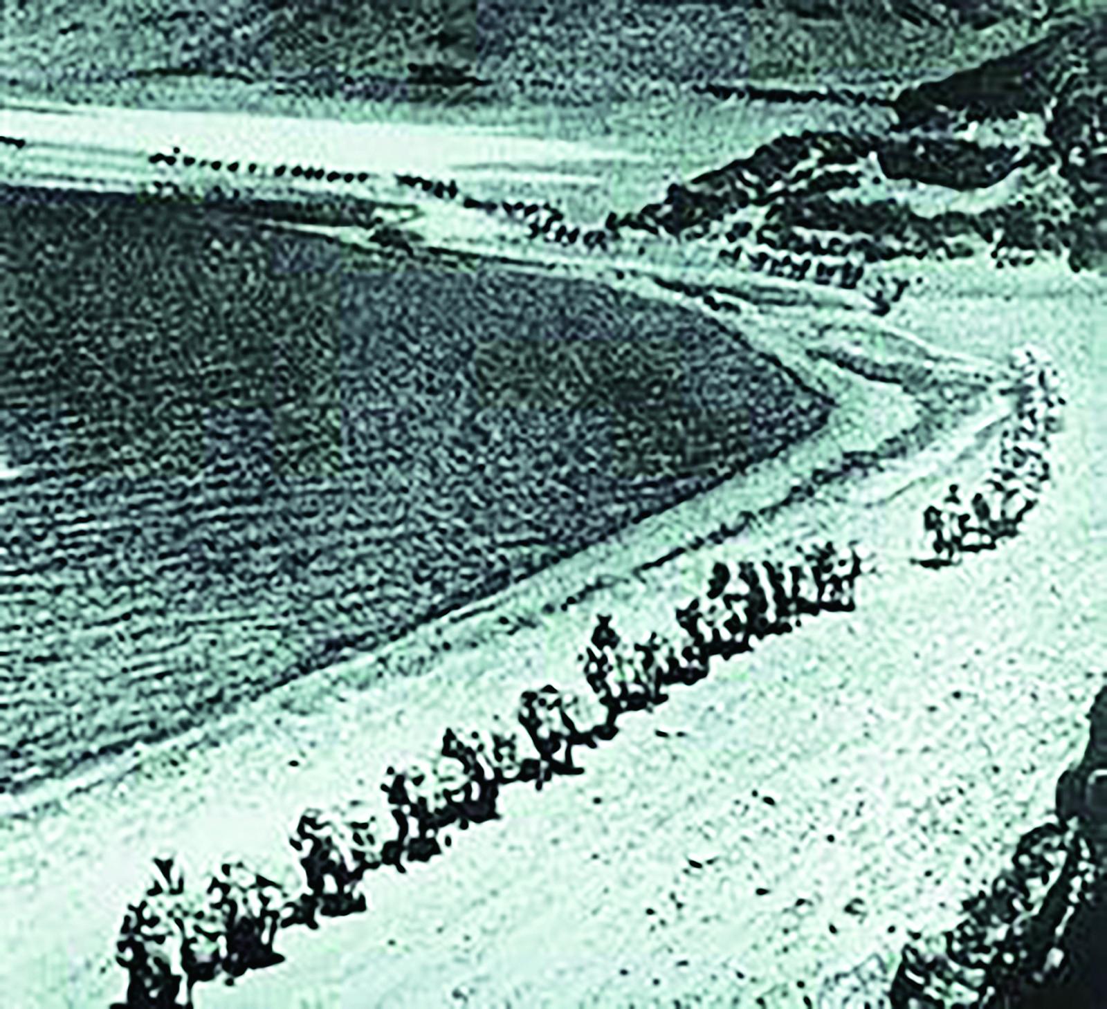 筑路工程隊(duì)要用最短的時(shí)間、最快的速度,修出一條“告急公路”。根據(jù)緊迫的形勢(shì)和施工條件,制定出“先通車、后改善、再提高”的施工計(jì)劃。