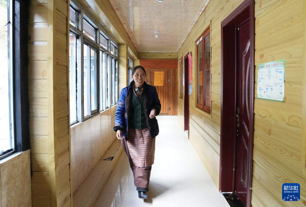 紐林塘村村民格桑卓瑪在家中走廊上(10月14日攝)。新華社記者 丁汀 攝??