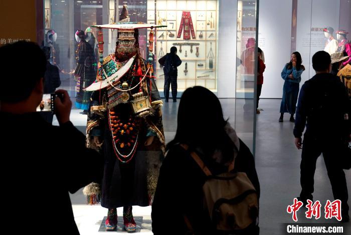 深秋拉薩,西藏博物館迎參觀熱,游客通過展覽了解西藏歷史文化和民俗風(fēng)情。圖為10月19日游客在西藏博物館參觀。中新社記者 李林 攝