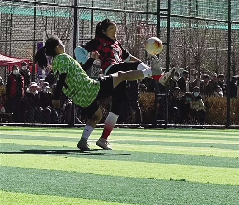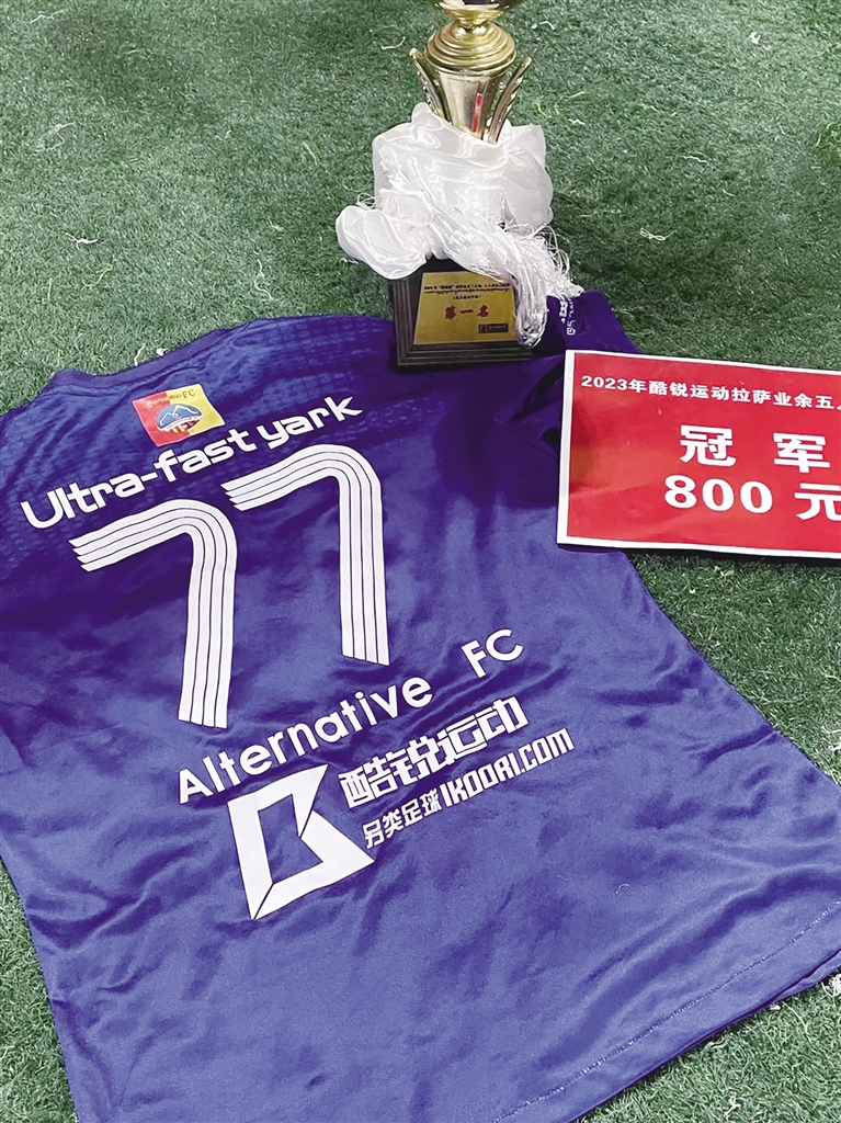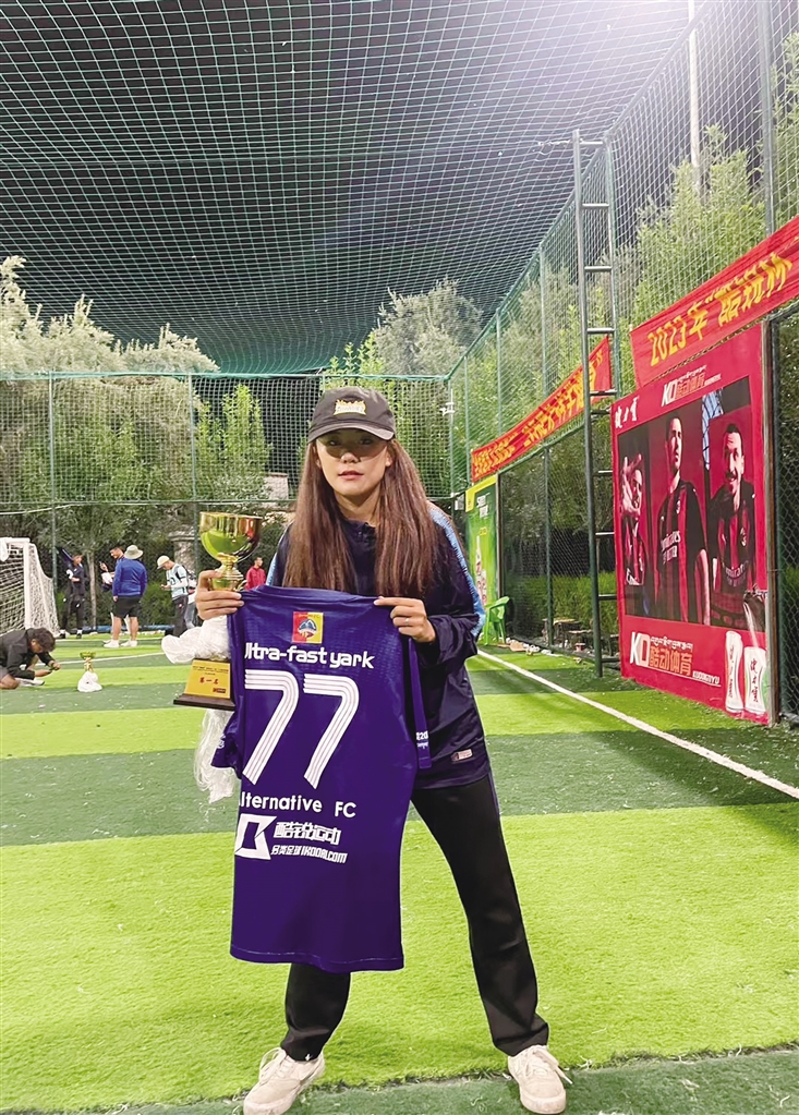 而最能證明她們訓(xùn)練成果的就是足球聯(lián)賽?!?023年“迎新杯”酷銳運(yùn)動拉薩業(yè)余足球5人制(女子組)比賽、第二屆“亞克杯”女子5人制交流賽在拉薩開賽,這也是西藏少有的女足賽事。米央以拉薩另類女子足球隊(duì)隊(duì)員身份參賽,盡管米央是隊(duì)內(nèi)年紀(jì)最小的成員,但她的能力絲毫不遜于任何人。米央所在的這支由高中生、大學(xué)生等組成的隊(duì)伍,經(jīng)過10場比賽,拼盡全力最終奪得冠軍?!懊慨?dāng)足球在我腳下滾動飛躍,每當(dāng)我奔跑在綠茵場上,那種肆意和快樂讓我堅(jiān)定我的選擇,我的夢想是踢進(jìn)中國國家女子足球隊(duì)?!泵籽胝f。雖然她與夢想還有距離,但內(nèi)心那股熊熊燃燒的信念力量,成為她刻苦訓(xùn)練的“定心丸”。