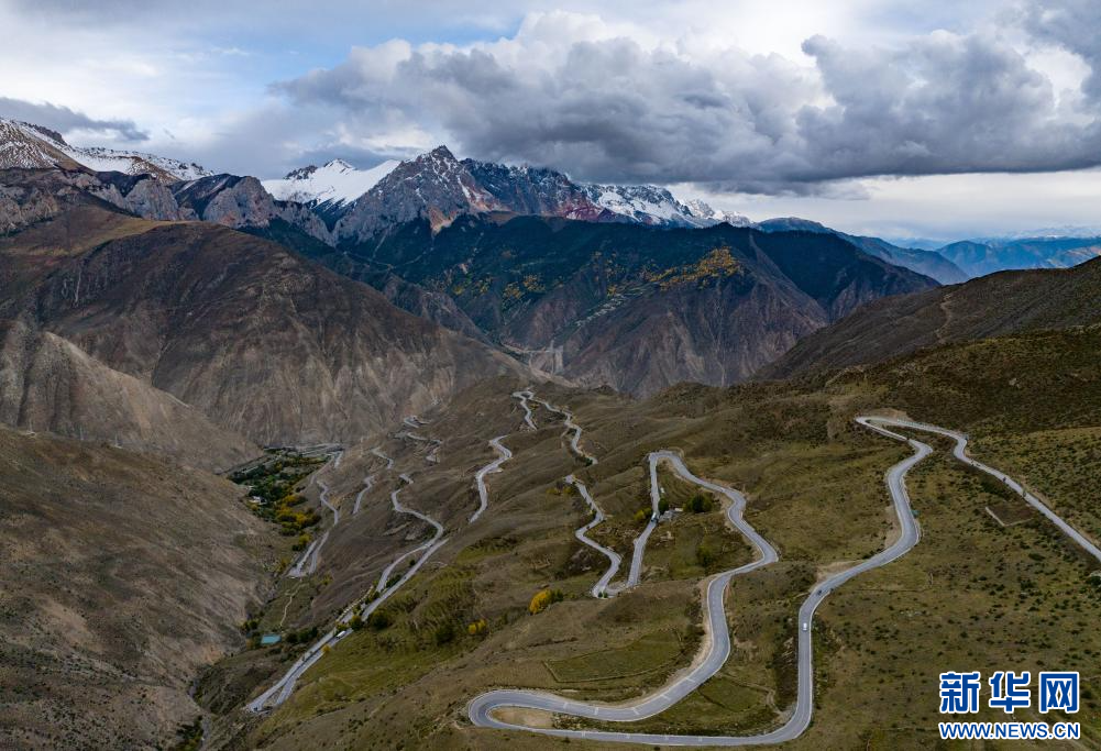 10月13日拍攝的川藏公路“怒江72拐”(無人機照片)。新華網(wǎng) 旦增努布 攝