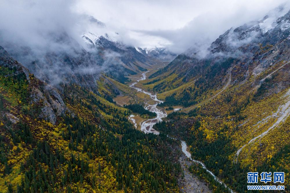 10月19日拍攝的川藏公路沿途風景(無人機照片)。新華網(wǎng) 旦增努布 攝