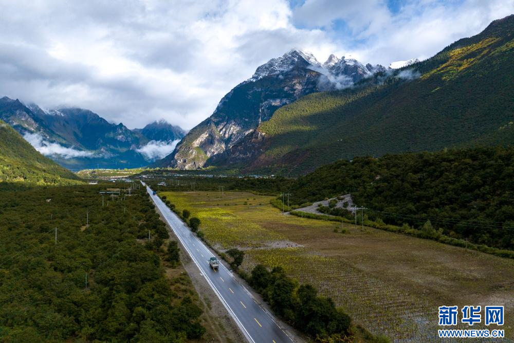 10月13日,在西藏昌都市八宿縣境內(nèi)川藏公路沿途拍攝的雪山(無人機照片)。新華網(wǎng) 旦增努布 攝