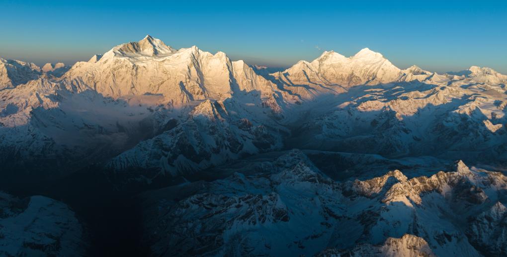 這是晨光照耀下的喜馬拉雅山脈一隅(4月17日攝,無(wú)人機(jī)照片)。新華社記者 丁增尼達(dá) 攝