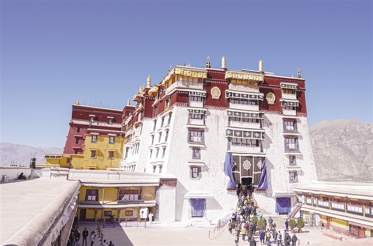 據(jù)了解,按照習(xí)俗慣例,每年藏歷九月前后,拉薩河谷地區(qū)雨季結(jié)束,天氣還沒完全變冷之前,布達(dá)拉宮就會開始一年一度的粉刷工作。從17世紀(jì)開始,粉刷布達(dá)拉宮已是300多年的傳統(tǒng)。布達(dá)拉宮每年的刷墻,是為了保護(hù)布達(dá)拉宮墻體結(jié)構(gòu),有效阻隔建筑外觀被風(fēng)吹日曬、雨水沖刷等自然侵蝕,同時(shí)也能避免外墻顏料脫落,墻體結(jié)構(gòu)老化等現(xiàn)象,確保布達(dá)拉宮建筑外觀能夠重?zé)ㄐ骂?,保持靚麗如初的顏色。
