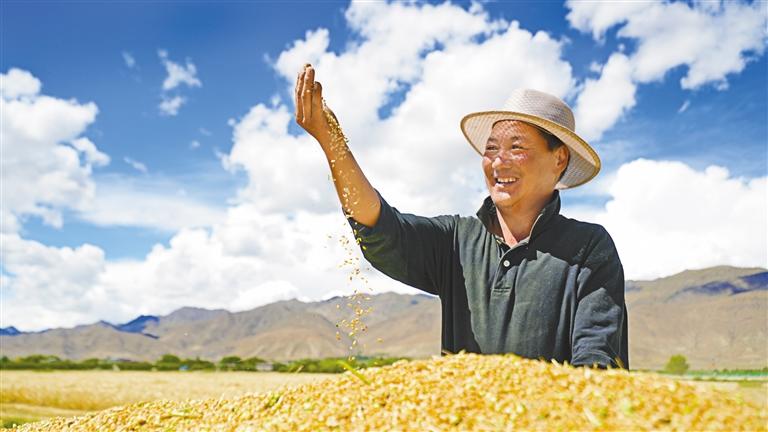 同樣的“豐”景,在日喀則市江孜縣江熱鄉(xiāng)江熱村也在上演,“我家有52畝地,留足口糧后光靠地的收入一年有三萬元左右,與去年相比,今年的產(chǎn)量還要高一些?!苯瓱岽宕迕窀裆Uf,“過去種青稞,大部分是為了自給自足留足口糧,現(xiàn)在種出來的青稞,能夠制成青稞酒、青稞餅干、青稞酸奶等產(chǎn)品,產(chǎn)品和銷售渠道寬了,農民們的收入自然也就高了。”