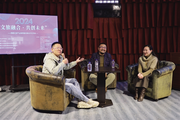 活動(dòng)在西藏文化旅游創(chuàng)意園區(qū)創(chuàng)業(yè)創(chuàng)新基地路演中心開展,邀請(qǐng)了拉薩市政協(xié)常委、國(guó)家創(chuàng)新工程師楊永濤,西藏自治區(qū)政協(xié)委員、西藏青企協(xié)副秘書長(zhǎng)珠勤,西藏自治區(qū)文化產(chǎn)業(yè)專家?guī)斐蓡T、拉薩市政協(xié)委員鄧?yán)麆?,三位資深專家進(jìn)行了經(jīng)驗(yàn)分享,并與參會(huì)企業(yè)代表以沙龍形式互動(dòng)交流?,F(xiàn)場(chǎng),參會(huì)者們積極參與討論,交流心得,共同探討文旅融合的新思路、新方向,為文旅產(chǎn)業(yè)創(chuàng)新發(fā)展注入新活力。