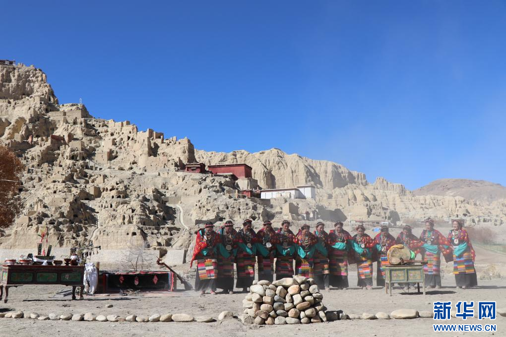 這是11月9日在古格遺址前的演奏現(xiàn)場,多名樂手正在合奏西藏傳統(tǒng)音樂。新華社 發(fā)