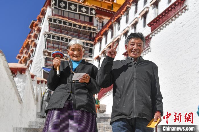 近日,西藏布達(dá)拉宮完成粉刷,呈現(xiàn)出別樣的美。粉刷后的宮墻在陽光映照下,與藍(lán)天白云相襯,顯得莊嚴(yán)肅穆。布達(dá)拉宮的粉刷,不僅是為了讓其外觀更加美觀,更重要的是能對墻體建筑起到保護(hù)作用,增強其防雨功能。按照慣例,布達(dá)拉宮每年藏歷九月左右開始粉刷,并且要在藏歷九月二十二日“降神節(jié)”之前完成,期間有眾多民眾,游客積極參與。布達(dá)拉宮作為世界文化遺產(chǎn),是眾多進(jìn)藏游客必去的“打卡點”。圖為11月8日,來自西藏昌都的信眾準(zhǔn)備進(jìn)入布達(dá)拉宮。中新社記者 貢確 攝