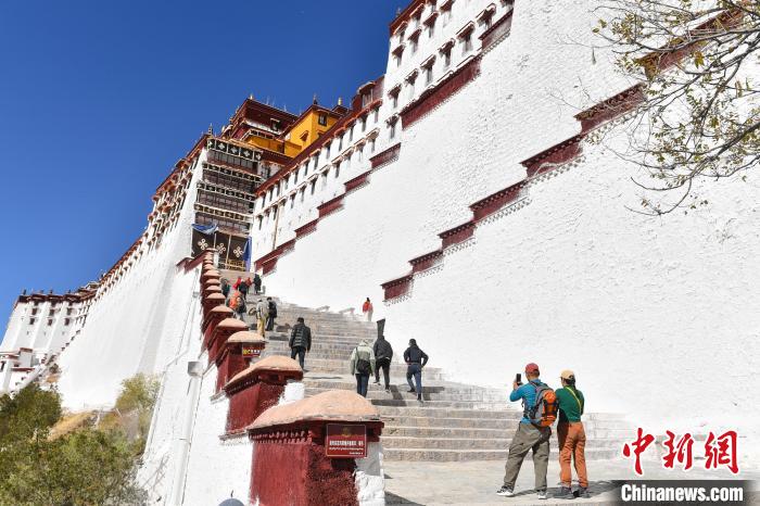 近日,西藏布達(dá)拉宮完成粉刷,呈現(xiàn)出別樣的美。粉刷后的宮墻在陽光映照下,與藍(lán)天白云相襯,顯得莊嚴(yán)肅穆。布達(dá)拉宮的粉刷,不僅是為了讓其外觀更加美觀,更重要的是能對墻體建筑起到保護(hù)作用,增強其防雨功能。按照慣例,布達(dá)拉宮每年藏歷九月左右開始粉刷,并且要在藏歷九月二十二日“降神節(jié)”之前完成,期間有眾多民眾,游客積極參與。布達(dá)拉宮作為世界文化遺產(chǎn),是眾多進(jìn)藏游客必去的“打卡點”。圖為11月8日,游客沿著臺階步行進(jìn)入布達(dá)拉宮。中新社記者 貢確 攝